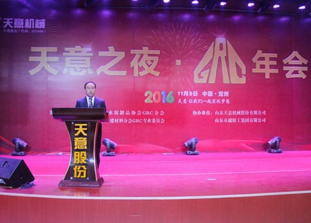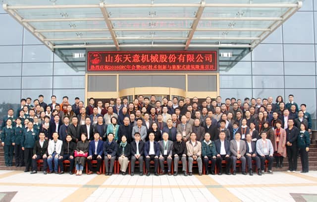 為加快GRC技術(shù)創(chuàng)新,積極適應(yīng)經(jīng)濟(jì)新常態(tài),2016年11月5日,2016 GRC年會暨裝配式建筑發(fā)展研討會在山東圣德酒店盛大召開,本次會議由GRC協(xié)會及專業(yè)委員會主辦,山東天意機(jī)械股份有限公司協(xié)辦。