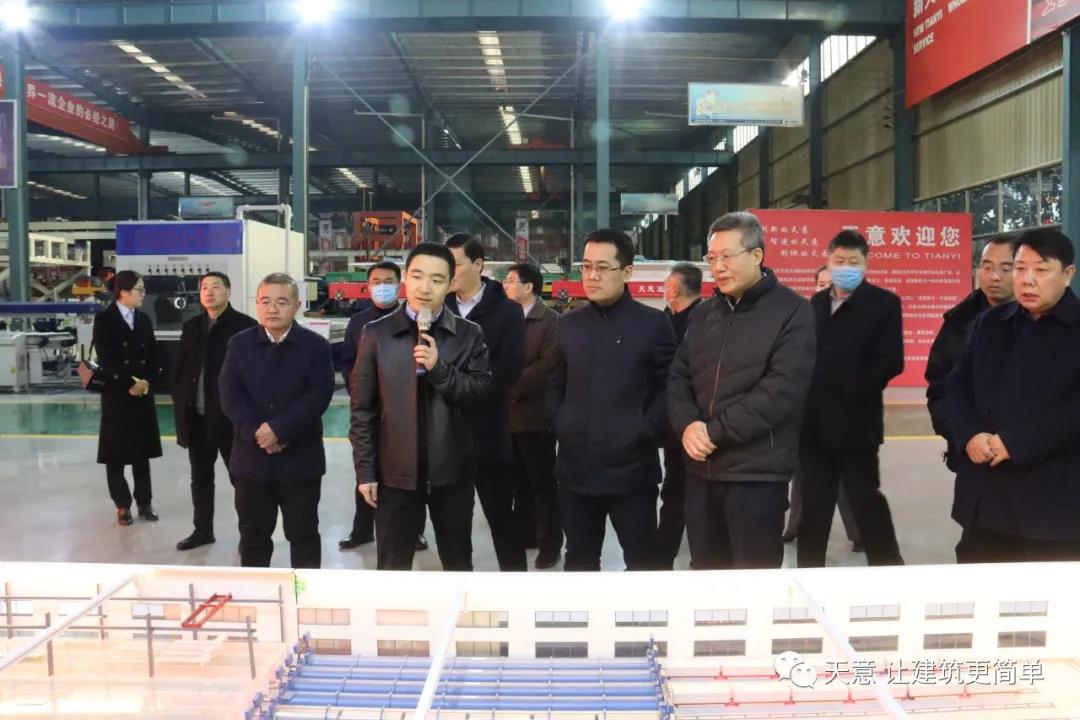 天意機(jī)械總經(jīng)理劉海龍向江副書記一行介紹了公司運(yùn)營(yíng)和裝配式建筑未來發(fā)展規(guī)劃等相關(guān)情況,并對(duì)天意機(jī)械裝配式建筑自動(dòng)化PC生產(chǎn)線項(xiàng)目進(jìn)行了詳細(xì)介紹。江副書記一行對(duì)天意機(jī)械創(chuàng)新產(chǎn)品的技術(shù)先進(jìn)性以及對(duì)裝配式建筑發(fā)展的引領(lǐng)和帶動(dòng)作用給予了高度贊揚(yáng)。并表示將結(jié)合本地實(shí)際情況,取長(zhǎng)補(bǔ)短,學(xué)習(xí)借鑒天意機(jī)械的好經(jīng)驗(yàn)好做法,把考察學(xué)習(xí)成果轉(zhuǎn)化為推動(dòng)本地企業(yè)發(fā)展的強(qiáng)大動(dòng)力和有力舉措。