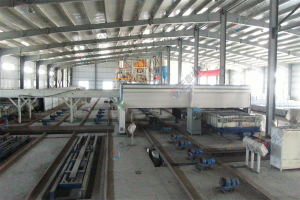 10.墻板機雙向開合,采用卯榫工藝焊接,確保大板焊接厚度以至,大板經(jīng)四面刨銑,能保證生產(chǎn)線上的模車一至,以便于后期整體上成型,自動抽芯機,自動涂油機的安裝。