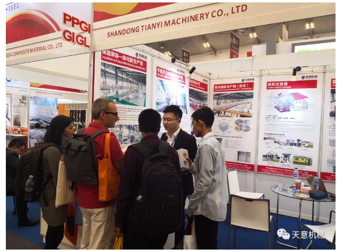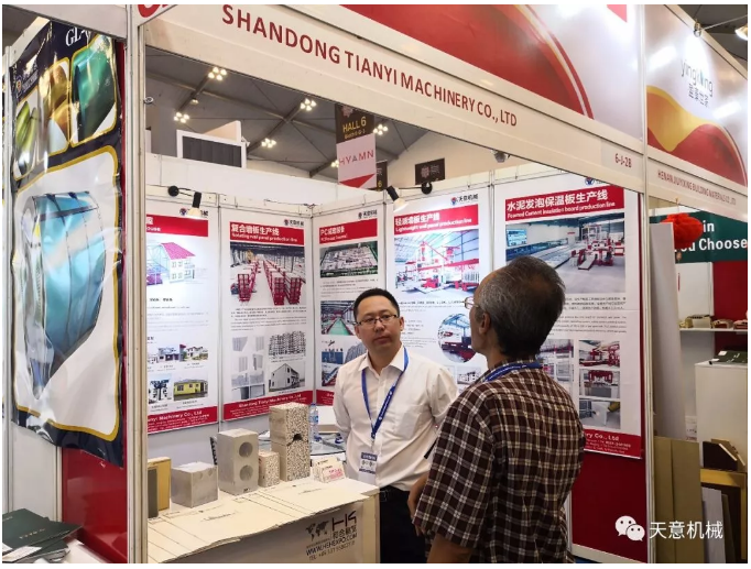 展會期間,天意機械展現(xiàn)了多款適用其本地市場的綠色建筑建材裝備,一經(jīng)亮相就吸了眾多客商的眼球,前來咨詢了解者絡(luò)繹不絕,天意國際銷售經(jīng)理為客商細(xì)心介紹天意裝備的優(yōu)勢,并得了眾多客商好評。